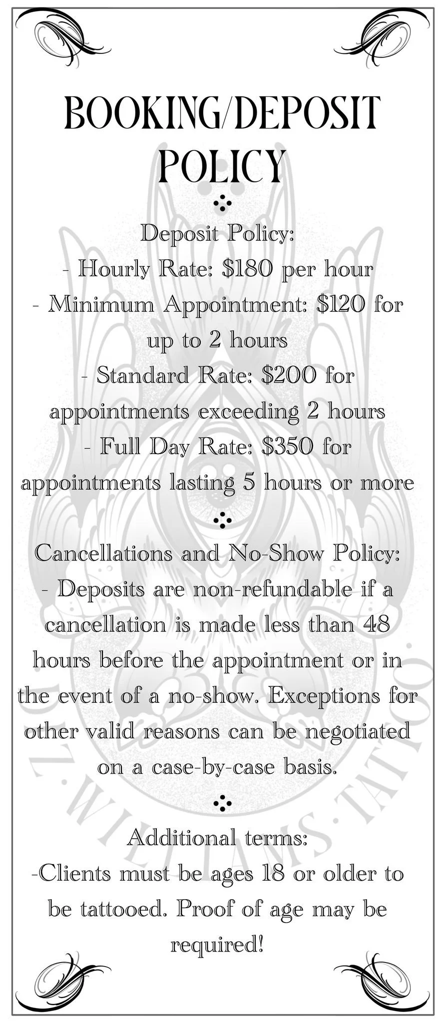 The loyalty and support I receive from my clients are a testament to the trust they place in me. Whether you are getting your first tattoo or adding to your collection, I am committed to providing you with a comfortable and memorable experience.